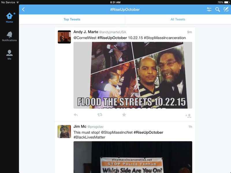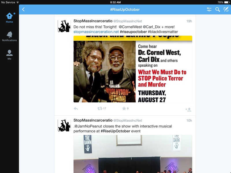 春燕注:我刚在Twitter上search hashtag RiseUpOctober, 看到非裔组织讲座,发新闻,有效运用social media,有太多可以学习的。希望大家动动手,开个Twitter 账户 @Chunyan_Li