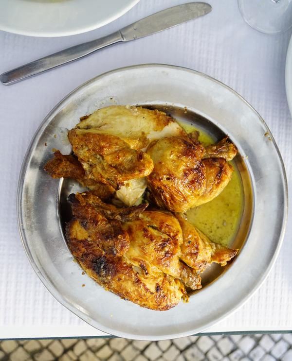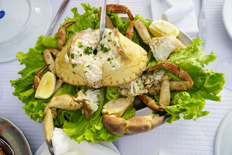 葡萄牙有着超过800 公里的海岸线,西面和南面比邻大西洋, 海鲜理所当然地成为美食的第一位。 吃海鲜最简单的做法就是直接烧烤吃海鲜的原味,他们用的配料不多,就是橄榄油、大蒜、香草、番茄和海盐等。葡萄牙大街小巷的大大小小餐馆,随便哪一家都可以做出美味的海鲜烧烤。最经济实惠就是烤沙丁鱼,在新鲜的沙丁鱼上撒一点海盐就直接烤来吃。沙丁鱼虽然多刺但是肉质鲜美,富含欧米茄3鱼油,是十非常健康的海鱼。葡萄牙海岸的大西洋是沙丁鱼的主产区,所以特别便宜。第二常见的是烤鱿鱼,香味四射,鱿鱼还要一种做法就是酿鱿鱼(Lulas Recheadas),把调好味道的肉碎洋葱等食材一起塞进鱿鱼的肚子里然后再把鱿鱼煎熟。还有就是葡国人的家常鱼: 鳕鱼Cod (我开始以为是石斑鱼后来才知道不一样)。传说中葡萄牙有365种鳕鱼的做法可以每天都不一样!除了尝过烧烤鳕鱼之外,还有那道在纳扎雷小镇(Nazare) 吃的布拉斯式鳕鱼( Bacalhaua Braz)真是让我久久难忘! (把鳕鱼先烤熟,切成丝, 用鸡蛋, 洋葱, 奶酪加上橄榄油炒,最后撒上香草! ) 我现在想起来都口水直流。这里的海虾又大又鲜,很有虾味,来一盘做餐前下酒菜, 7欧!来一盘海鲜烧烤大杂烩(沙丁鱼、鱿鱼、鳕鱼、鲷鱼,三文鱼、海虾等等)35欧元已经把三个人吃的饱饱的。葡萄牙的食品比英法意大利德国瑞士便宜多了!如果你肯移玉步,坐轮渡到里斯本对岸的阿尔玛德镇,海鲜会更加便宜了: 大面包蟹(其实好看不好吃,没多少肉!)这里才17欧一只,里斯本市区要卖25欧。在葡萄牙吃饭有一个不成文的规矩,就是每一桌都会上一两盘头台小菜加上面包之类的,没有你没有说不要的话,那就会在结账的时候把小菜的钱一起算上。 除了海鲜,葡国烤鸡是一道不得不提的好菜!Restaurante Bonjardim 是当地人力荐的一家餐厅,除了有丰富多样的海鲜外,烤鸡是他的首本名菜。这种葡国鸡个头只有一斤左右,加上特殊的香料,被烤得金黄酥软,肉质香嫩,让人垂涎欲滴!
