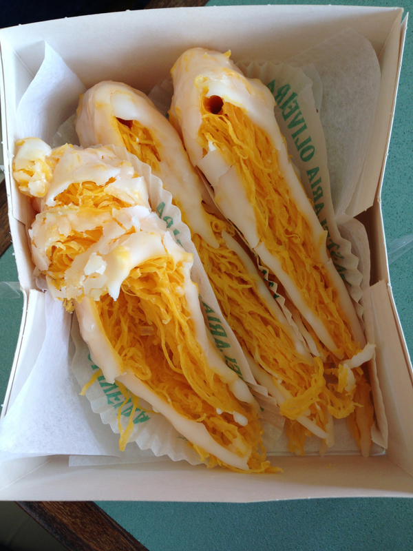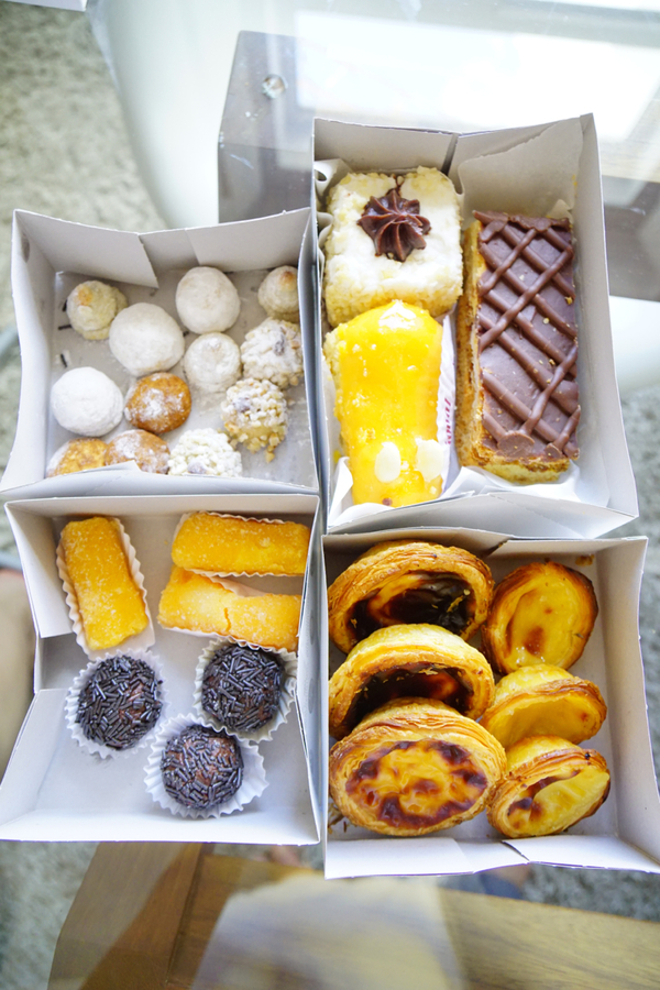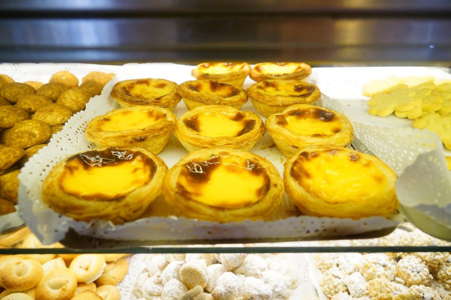最出名的甜点就是葡挞(葡萄牙蛋挞 Pastel de Nata), 以前只在广州和澳门吃过,是什么味道都忘了,这次可谓吃正宗地道的。它是一种小型的奶油酥皮馅饼,用最优质的面粉和奶油蛋羹精心烹制而成,上面还可以洒有肉桂,有点焦黑的表面(是糖过度受热后的焦糖)是其特征。相传最晚在18世纪葡萄牙里斯本热洛尼莫修道院的修女发明的。1837年开始在 Pasteis de Belem 饼店出售,当时因为店子位处里斯本的贝林区而称为贝林挞。可惜我们这次没有找到这家还在营业的世界第一葡挞店,只去过一家在罗西奥广场,创于1829年的糕点店 Confeitaria Nacional, 这里的葡挞外皮酥脆蛋羹芯香滑嫩,口味甜中带点咸,还有蛋奶天然的清香,是我吃过的最好吃的葡挞! 葡萄牙其他甜点色彩外形也十分吸引人,但是味道却不是法国意大利的对手。但 Batalha 镇的特产杏仁饼却让我回味,口感松软不太甜却很有杏仁味!另外一种特产鸡蛋饼就是纯粹蛋黄和糖做成,挺好看的,但是太甜加上那种蛋生的腥味我受不了。