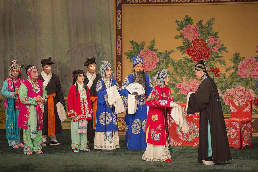 二个半小时的演出没有中场休息。一路掌声不断(主要是给张火丁教授,各位主唱和动作演员的),也一路笑声不断(那些丫头,老妈子,势力眼傧相两父子,丑角演出幽默搞笑)。