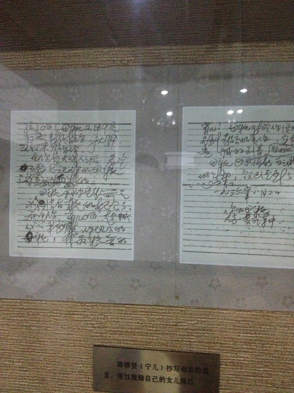 三. 赵一曼事迹耳熟能详,见过救她逃走的推车和护士照片吗?读过她的诗句和给宁儿写的信吗?前者令人热血沸腾后者使我潸然泪下。旁边一位参观的女士看到牢房就掉泪了,问起,说她很多亲属曾生活在那时代。是啊,家乡的靖宇大街,兆麟公园,尚志大街,赵一曼公园是我每次带孩子经过都要指出的。赵一曼公园更是带老母小儿散步必经之地。儿时被迫学日语的母亲还给外孙们指着浮雕念赵一曼家书。