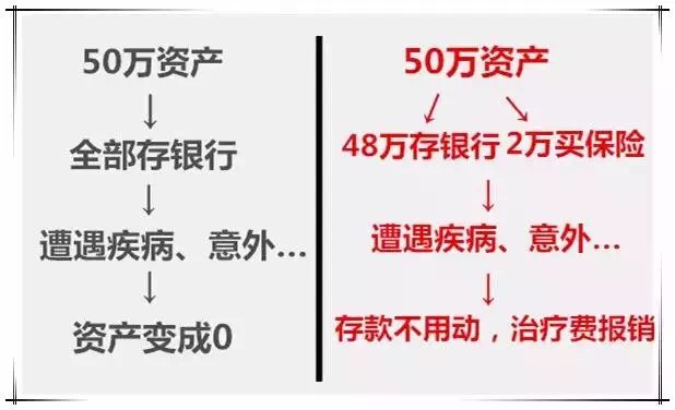 把钱放在银行和把一部分钱放在保险公司其余存银行,到底有什么区别,一张图就可