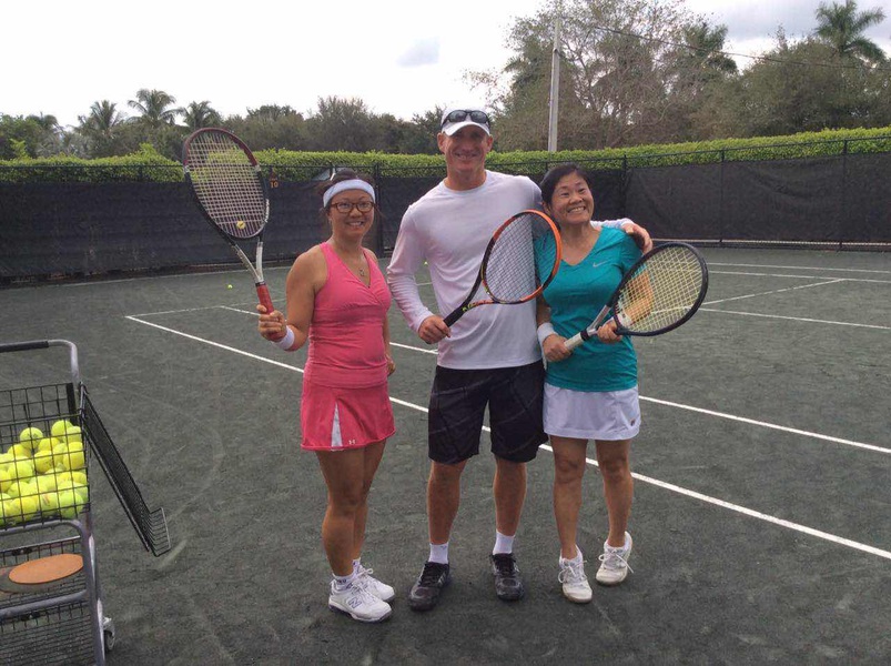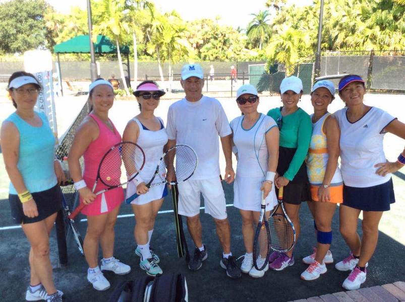 日前,曾在全美网赛多次摘冠,效力大型高档社区Mirasol 10年之久的资深专业人士Chirs pressle 主持执教,来自Palm Beach Garden, West Palm Beach, Delray beach 的十几位女子网球迷兴致勃勃地加入集训行列,认真紧张,奋力拼搏,满身汗水的浸透,满脸兴奋的喜悦。