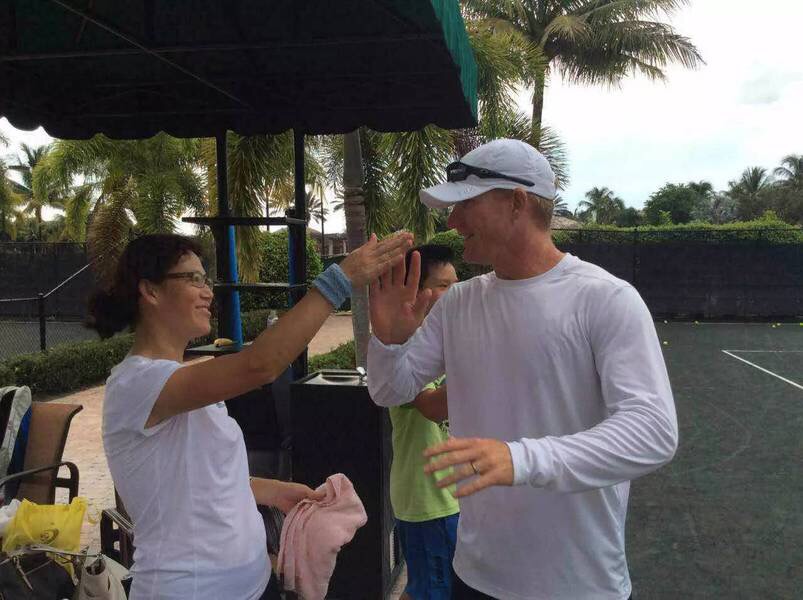 如何蠃得比赛?深知自己年龄优势不再,但我有先天的体能优势。为利用自己体力好的优势,首先要练基本功,我常常以三倍时间多于队友在球场练习,记住教练所授技术要领,和不同的人打球,不在乎男女老少,不在乎开车多远奔场地,不在乎天气冷热飘雨,甚至不介意有人not nice to me。我告诉我自己,终有一天我会打嬴你!功夫不负有心人,7年之间,我在SPBCWTA 从最低level D7 打到最高level D1. 在Palm Tennis Queen Leauge , 从sub 打到主力,教练为我的进步骄傲,同时问我:“你们中国人都是这样顽强吗?” “Pretty much, just like Na Li" 我这样回答他。