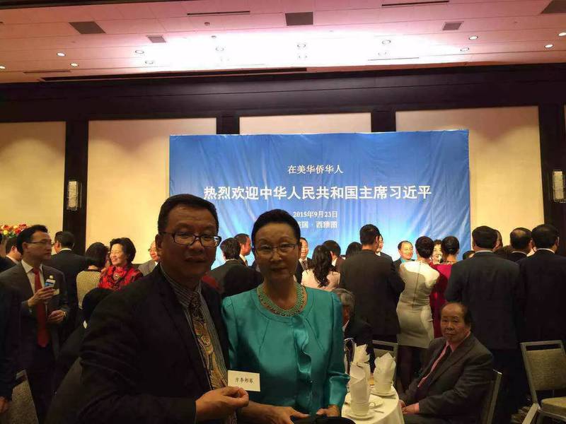 当代戏剧人物画家段昭南先生与奥运冠军林莉等一行专程前往西雅图参加欢迎习近平主席访问美国招待会。