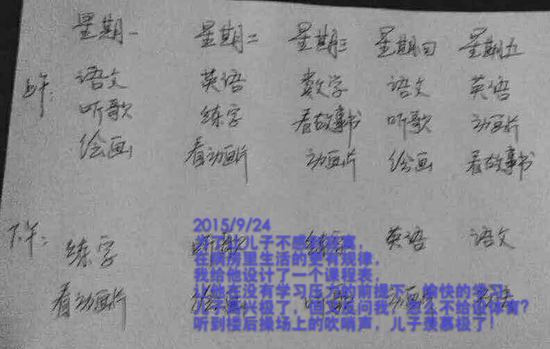 几位护士阿姨看到了孩子的课程表,说我排的不科学,怎么没有体育课呢?也可以设眼保健操呀
