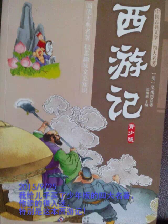 我给儿子买了少年版的四大名著,他读的很入迷,特别是这本西游记!