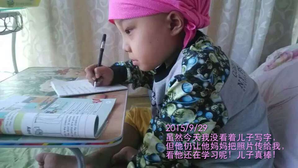 儿子认真的正在写日记,看着儿子认真的表情,我不知道将来会如何,祈求上天放过儿子吧,放过我的家庭吧!!