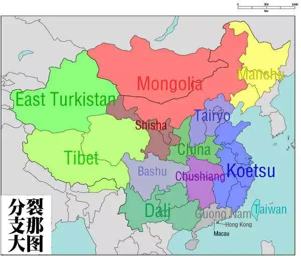 2、灭亡像中国这样的大国的时候,不能过于着急的一口吃掉,而应像吃生鱼片一样,一片一片的吃。中国不同于日本,他是个多民族混合的国家,自身矛盾很多,应该利用他们内部的分歧和差异,分裂这个国家,然后一个一个的消灭,新疆、西藏、青海、宁夏、满洲等都应成为独立自主的国家,分裂这些地区的根据就是他们独有的民族性。这就是外界传播的中国七块论,我们具体为《分裂中国计划》,这是我们征服亚洲,灭亡中国,进行圣战的一部分。