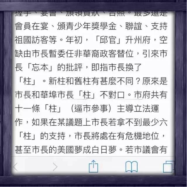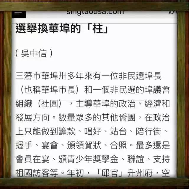 2015年10月19日,行不改名的侨领吴中信先生,在星岛论坛发表文章,教导了我们三藩市有个「市中市」的小王国的现实。华埠里面的一些人和非牟利组织,早已经成功圈地,把持选票,划华埠为自己的王国,自立为王。