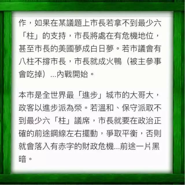 这些有巨大政治野心的政客,就是四人帮(金贞贤、马兆光、Campos甘大为、Avalos阿华乐)和慈禧太后正在力捧的Aaron Peskin佩斯金。在今年的大选中,他们推举已经退了位的佩斯金出山,与市长指派的Julie Christensen冀芷欣 对垒竞选第三区市参事之职,目的是要与李孟贤市长为敌。但同时,他们更通过山埃提案,划出更大的圈,把地盘一路伸展到东半个的三藩市,迟早把全市私有化后,划分成像军阀那样各自为政的地方,继而可以为所欲为搜刮更多民脂民膏。