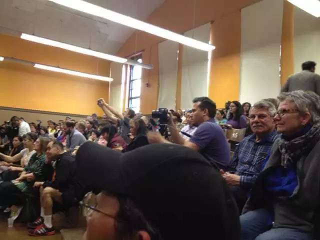 今晚的debate是immigration rights defense(移民权益保护会)主办的,这个机构是要政府出钱帮助非法移民做defense而阻延被递解的组织,黑压压的一大片西裔都是来支持打老婆者的。只有十个八个,包括Kathy、妈妈和我来支持未来女郡警局长。但我们有信心,她一定能赢。