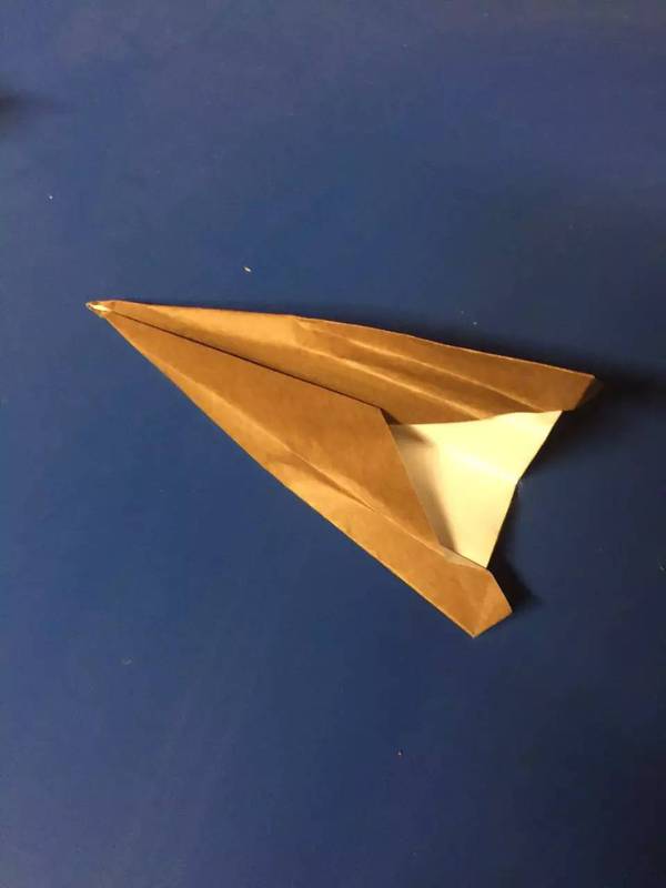 第一个演化,如何让飞机飞的比较慢?答案,为了让飞机飞得慢,就要扩大飞机的机翼面积。增大空气阻力。于是基础纸飞机的机翼变大了。