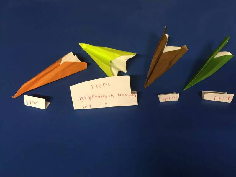 这只是飞机演化的第一层次,接下来还可以看看有没有可能两种属性组合,三种呢?机翼大小不同变化会对速度有多大的影响?其他的属性变化会有多大的影响?哎呀,简单的纸飞机也可以有很多变化。