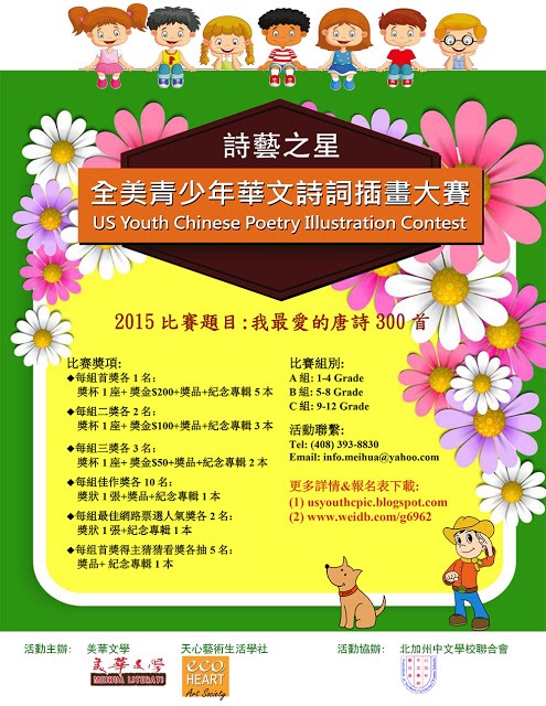 全美青少年华文诗词插画大赛孙燕-1325 11/05 7326 4.0/1 《美华文学》今年最大型的活动“全美青少年华文诗词插画大赛”正在热烈进行中。《美华文学》为全美国的孩子提供了一个培养孩子中华文化,展示孩子才艺的平台。家长们,不要错过这个大好时机。http://usyouthcpic.blogspot.com/ http://www.weidb.co/p30845http://sunyan.weidb.com/p30845 获取作者更多文章 上一页 下一页 1. 做一个栽种爱的人(9876) 2. 雨中采花(5935) 3. 我读《灿烂千阳》(5586) 4. 运动乐(5613) 5. 推荐一部好电影“Hacksaw Ridge” 一个没有武器的战士(7162) 6. 折叠的哈尔滨,折叠的中国 孙燕(4743) 7. 古董市场(5757) 8. 回家之路(6203) 9. 走进斯坦贝克的家(7092) 10. 从容走过人生路(8863) 11. 赌场小记续(8729) 12. 赌场小记(8387) 13. 走进内华达(8278) 14. 童年的“姑娘”(7580) 15. 橘颂 孙燕(7891) 16. 清明节 孙燕(6923) 17. 幸福的生活靠劳动来创造(7999) 18. 又是一年梨花开(6399) 19. 电影“comfort”(7468) 20. 加州好雨(7547) 21. 生命中的蟹爪兰(11800) 22. 一个崇尚流氓的国度 孙燕(10370) 23. 上善若水(7377) 24. 养花儿与养孩子(8025) 25. 一块巧克力所想到的(7648) 26. 北京宴 孙燕(12393) 27. 珍贵的柿子 孙燕(8622) 28. 冬至 孙燕(8000) 29. 情系琅琊榜(8208) 30. 节日的季节(8654) 31. 为自己营造一片春天(8383) 32. 四季的滋味(7744) 33. 再行酒乡 孙燕(8370) 34. 全美青少年华文诗词插画大赛(7326) 35. 摘栗子喽! 孙燕(8370) 36. 酒乡行 孙燕(8710) 37. 霜降 孙燕(8942) 38. 孙燕 回国日记(二)清晨(9450) 39. 孙燕 回国日记(十四)回家(11233) 40. 孙燕 回国日记(十一) 一次完美的洁牙(10658) 41. 孙燕 回国日记(八) 我的二十五个同学朋友(18321) 42. 孙燕 回国日记(十三) 买书(9038) 43. 孙燕 回国日记(十二) 医患关系(10134) 44. 孙燕 回国日记(十)看病(15087) 45. 孙燕 回国日记(九)太阳岛(14500) 46. 孙燕 回国日记(七)聚会(17511) 47. 孙燕 回国日记(六)公厕(9598) 48. 孙燕 回国日记(五)卫生(8622) 49. 孙燕 回国日记(四)退衣(8641) 50. 孙燕 回国日记(三)买衣(8832) 上一页 下一页