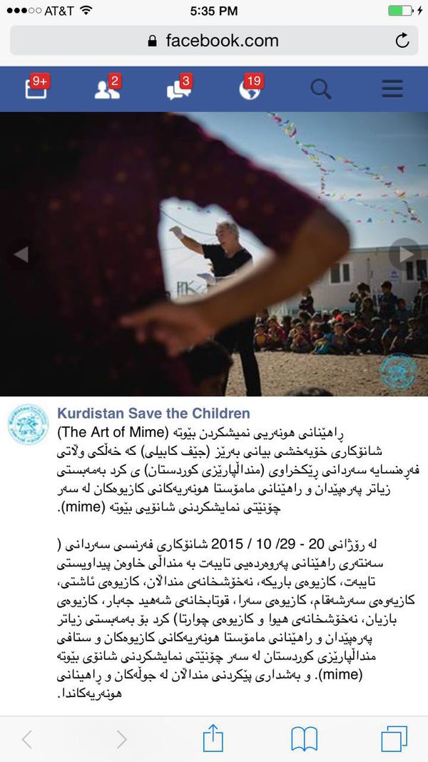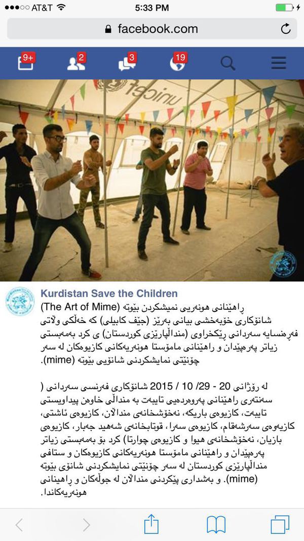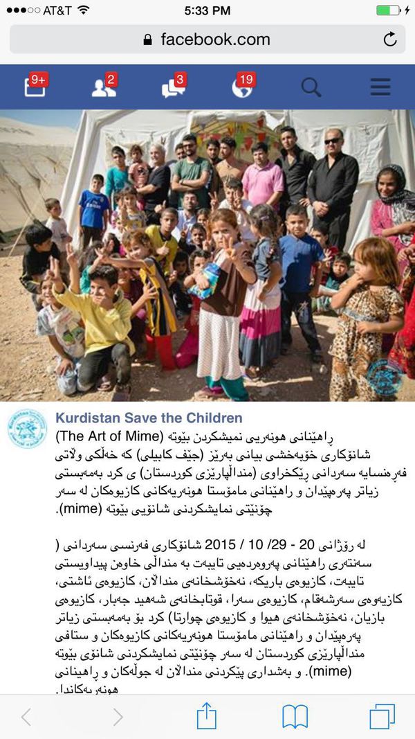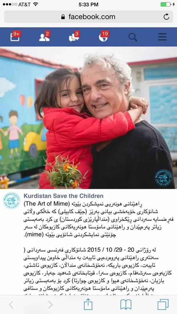我和丈夫都惊讶地瞪着J, 他只是Palo Alto 小镇上一个普通的居民,怎么会想起来干这种联合国慈善大使的活儿?他沉默了一会儿,说:我在巴黎陪父亲,听到一个消息,说ISIS杀了一些孩子的父母,当着孩子的面,把他们父母的头割下来了,孩子们从此丧失了说话的能力…你们知道…我会演哑剧,我决定去做这桩事情。我就去了喀特斯坦,叙利亚,伊拉克给那些孤独的孩子表演,有的难民营多达一万几千人,其中光是未成年的孩子就有6000多人。我一边表演一边培训难民营的工作人员,以求等我离开后,他们可以教那些哑掉的孩子,通过演哑剧来表达以获得快乐…他演了几十场,在医院里,看着那些炸掉了大腿和手的未成年人,他边演边哭,孩子们看见红鼻头哑剧小丒流泪,反而哈哈大笑……