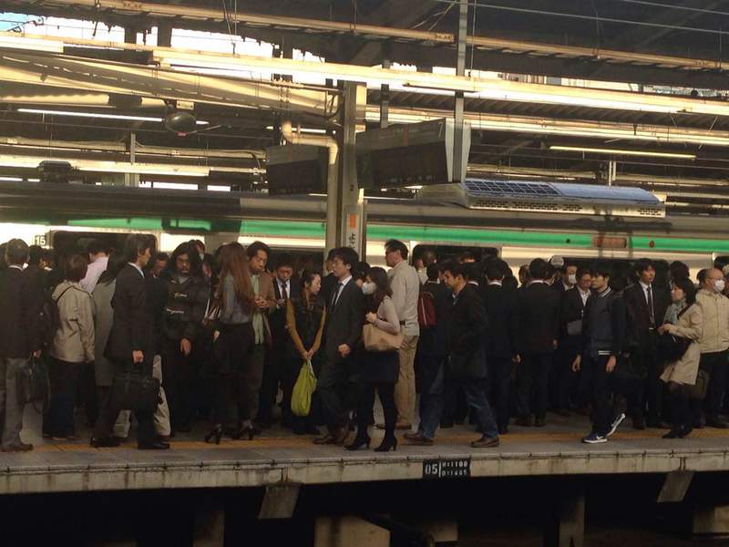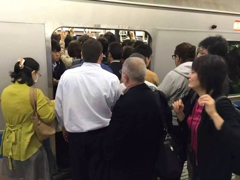 一个常来日本,颇有经验的同事给我们做了动员工作,下趟车来了,不管挤成啥熊样,咱们必须都要挤上去。到时候女士在前,男生在后,身强力壮的在最后,一个推一个,一个也不能少!这时一同事提出自己有幽闭症,我们只能空洞地安慰说其实就是门口挤,里面估计还是有空间的。