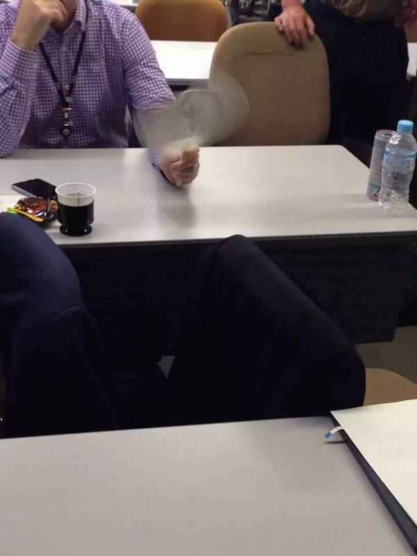 没带电扇的就手摇各种纸扇。大家常说BYOD-Bring Your Own Device去工作,这里看来是BYOF-Bring Your Own Fan to work(自带扇子去工作)。