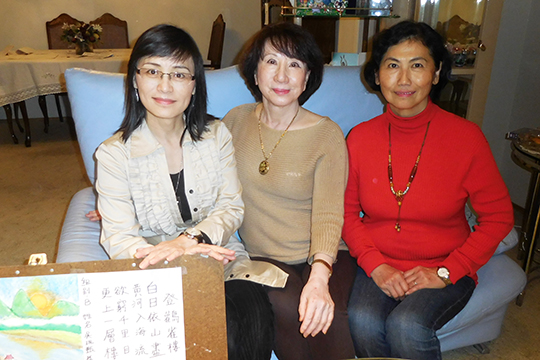图片说明: 郎豪莉、朱立立、召集人周典乐(右)三人交换对参赛作品的看法。
