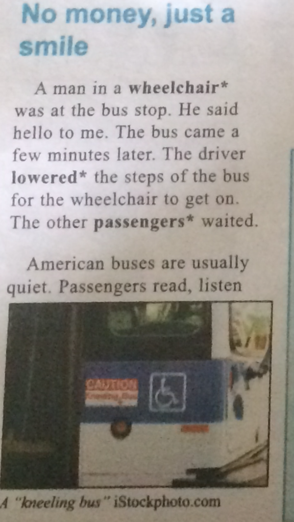 American buses are usually quiet. Passengers read, listen to music, or talk with friends very quietly. It lets you enjoy the scenery outside. This bus was a bit different because something beautiful happened.