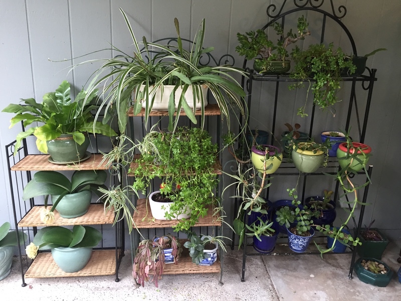 换盆,上架,整整忙了一个上午,我的植物像我的人一样生命力顽强,抗折腾,任我换来换去,很少有阵亡的。有朋友问我:这么多花浇起水来是不是太麻烦了。可我并不觉得麻烦,因为我浇水的时候是与花儿们交流的过程,就像看着孩子们一天天长大,如果她们开花给我,我便欣喜,不开花我也快乐。