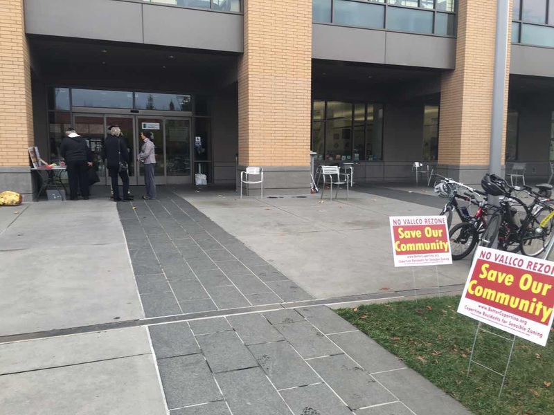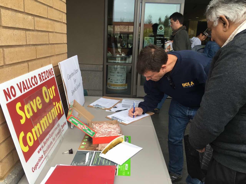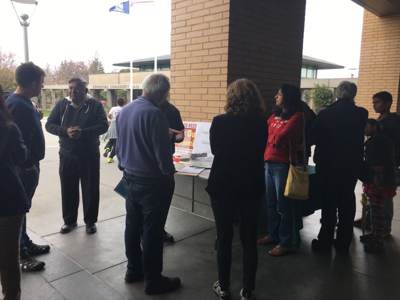 12/20日星期天,天气格外阴冷,寒风刺骨。但是恶劣的天气挡不住库市居民对“库市市民理性发展公投提案”的热情。在Cupertino图书馆门前,公投提案义工的摊位旁,挤满了关心询问的群众,还有要求签名的选民们。没有注册选民的公民,可以立刻在图书馆取表注册,然后签名公投。本来摆摊计划两个钟头,但是看到络绎不绝的民众,义工们硬是在寒风中坚持四个钟头,分发传单,讲解提案,回应热情的支持者。