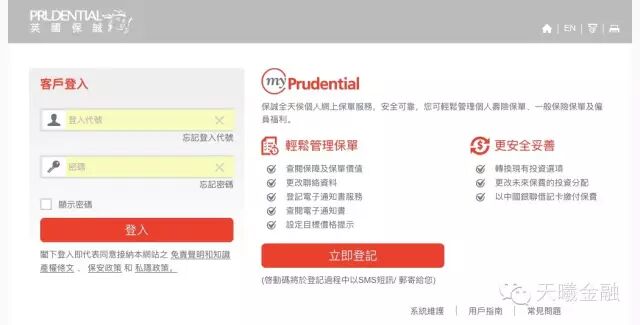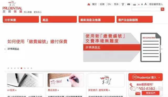进入保诚保险主页(以下示例以桌面电脑登录截图,以手机登录界面稍有不同):http://www.prudential.com.hk,点击右下角myPrudential登入。