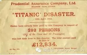 1912年4月10日,标志着工业革命的成果,号称“永不沉没”和“梦幻之船” 泰坦尼克号在北大西洋撞上冰山而倾覆,1500人葬生海底,造成了当时在和平时期最严重的一次航海事故。灾难发生后,当时保诚迅速做出反应,在巨轮沉没仅仅24天后,英国保诚发表公告对本次事件中罹难的客户进行理赔,并最终为324名乘客和船员赔付14239英镑。