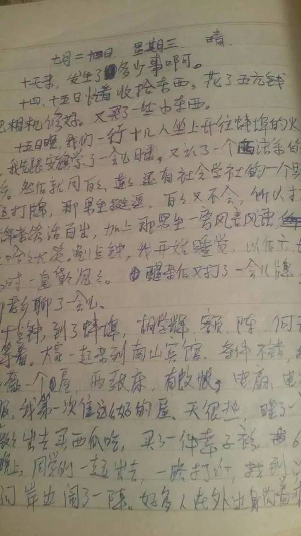 以后四天,我们每天早出晚归,到马路乡的苏湖、梅湖、马路三个村搞调查。条件很艰苦,天气炎热,叫人难以忍受,我起了一身痱子。马路乡离区委很远,每天他们都骑车去。我有时坐公共汽车,有时坐他们的自行车,有时搭车。路特别糟,凹凸不平,一趟下来,我的腿就硌清了。人到了万不得已的时候也会被逼出来。我学会了上自行车后座。付喜国车技很糟,也壮着胆子骑上自行车。亚杰臀部破了,忍痛坚持。李晋、梦琴学会了带人。这几个同学都很好,克服重重困难。