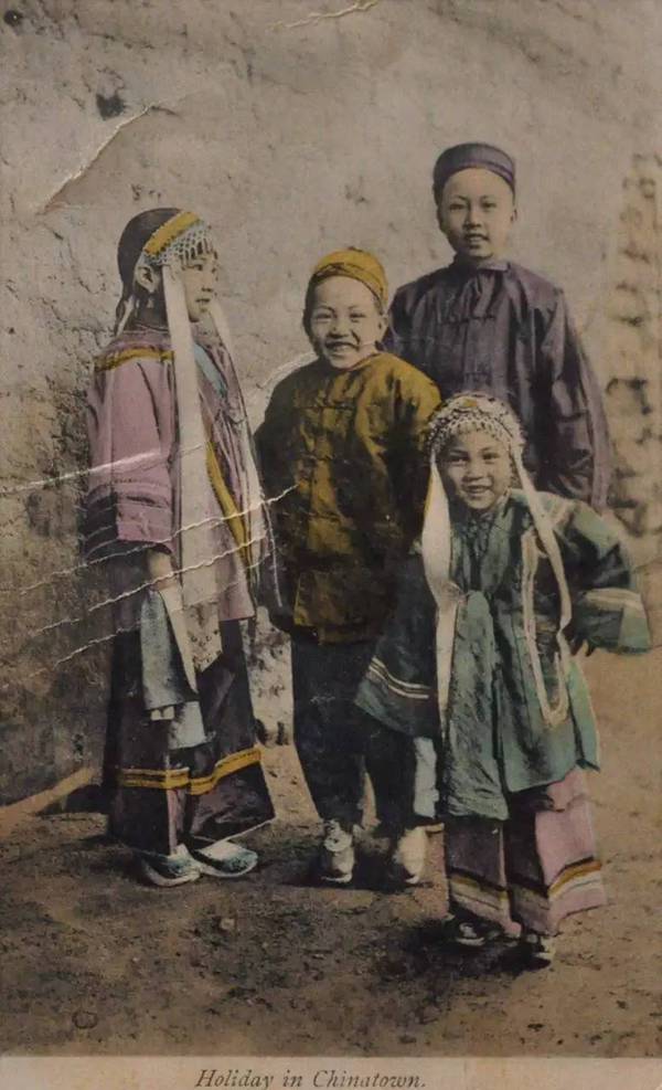 - 270. (明信卡 5) 三藩市唐人街兒童節日盛裝合照,照片攝於1901-1907期間,展示中國清未時期兒童服飾。林凱斌藏(70768)
