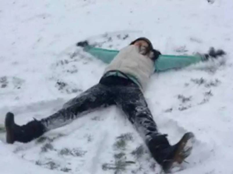 少年ABC芭蕾舞美女, 第一次躺在大地舞台上, 四肢舞动 , 画出一个雪上天使!❤️ making a snow angel !