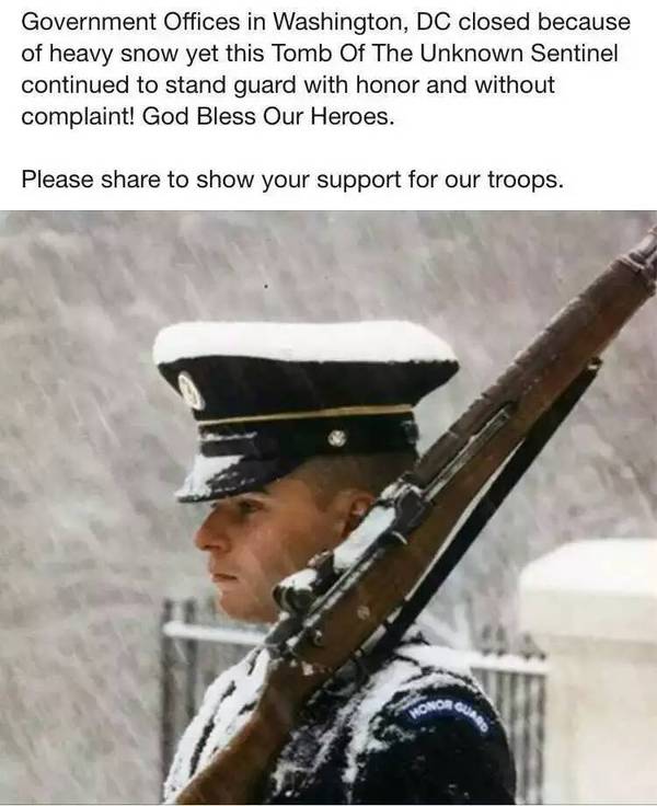 最令人感动的是, 冰天雪地里 , 美国华府附近 , 守卫在无名烈士墓的士兵们 !