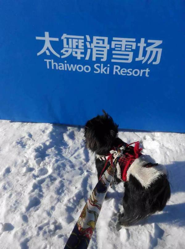 ●蓝天白云下的北京, 好美 ! 爱犬有模有样🎿, 来段滑雪小视频吧 !