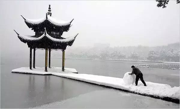比起平面水墨画之烟雨濛濛 , 银雪素裹的西湖 , 美得立体层次渐序 , 百年一奇景 !