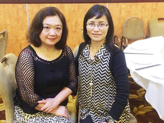 图片说明: 执委会主席郎豪莉(右)衷心欢迎北美知名作家海云(左)加入评审委员团队。