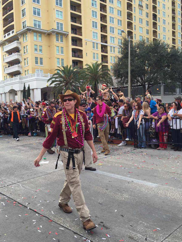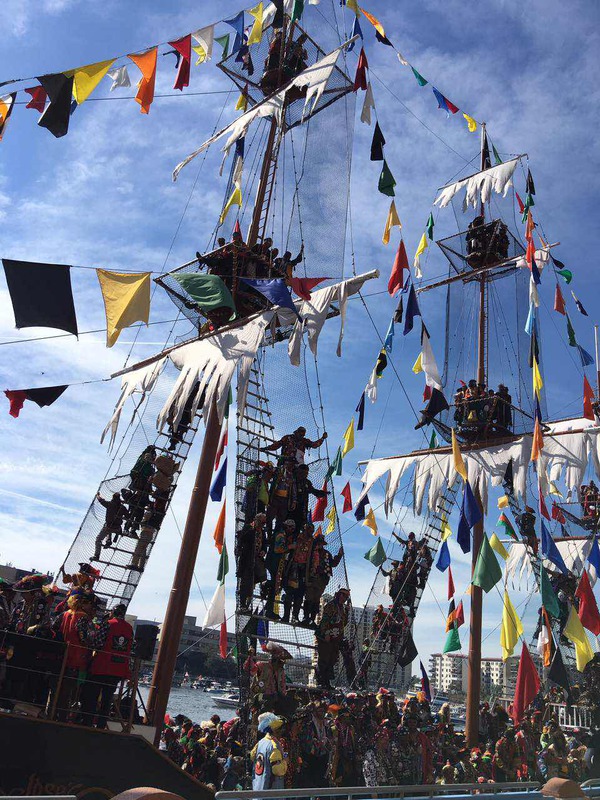 坦帕市每年的今天都会有海盗节,是全美国最大的非新奥尔良的,不是万圣节的一次狂欢,人们载歌载舞欢乐无比