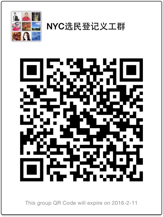 作为纽约华人自发形成的草根义工组织,“NYC选民登记义工群体”邀请您加入我们,一起参与到社区及活动中帮助选民登记。只要您有一份义务贡献精神,都可以加入进来。没有英文要求,也欢迎学生参与。