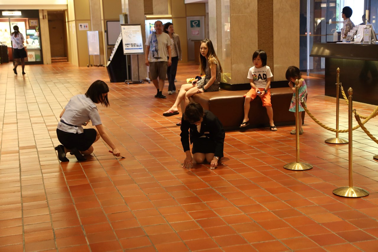 2,酒店前台的工作人员(不是清洁工),利用工作间隙半跪在大堂擦地板。我几乎每天都能看到一两次。