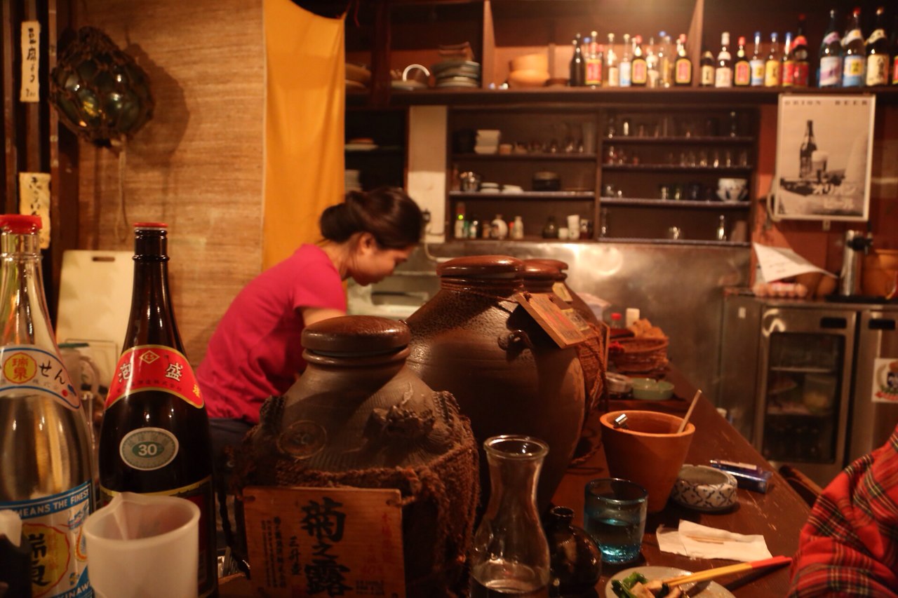 居酒屋,是日本非常流行的小餐馆。在我住的酒店边上,徒步5分钟,有一家叫“andon”的居酒屋(招牌上写着:八重泉,实际是日本一个清酒的品牌)。我在冲绳所有的晚餐,都是在这里消费的。