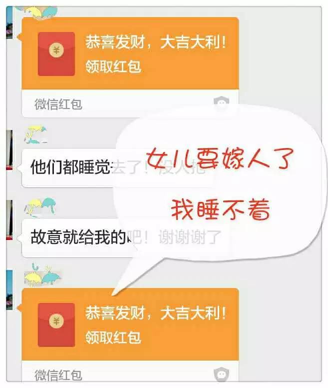 大堂哥几乎一夜无眠,一直在家族群中自言自语:舍不得女儿嫁睡不着!同时还在几个“夜猫子”的“引诱”下频频发红包……