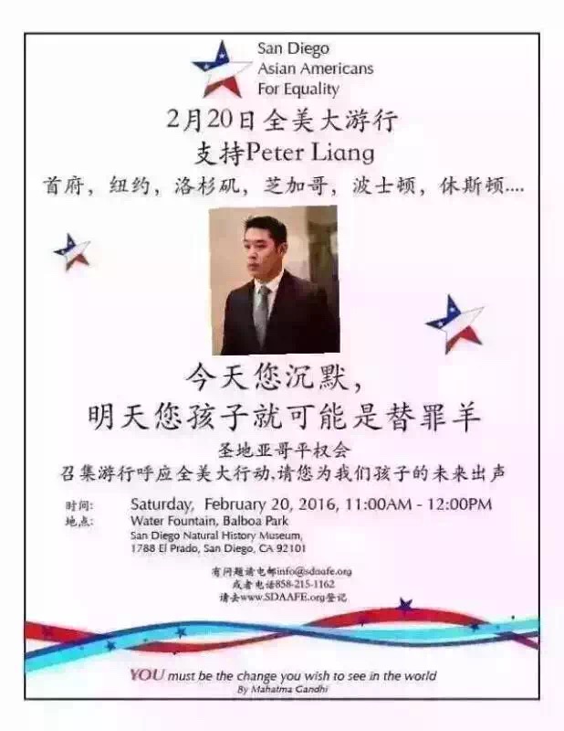 微信上发现,有实用![抱拳][抱拳][抱拳]对游行的几点看法和建议: 现在的游行有不少问题:使用大量的中文标语,关键词使用中文而不是英文, 美国主流社会的人看不懂; 对黑人Mr. Gurley 的不幸遭遇没有表达同情, 好像华人没有同情心似的;对Peter Liang 的支持的标语有歧义,口号说“支持Peter Liang”, 是支持他误杀人么? 语意不明确, 好像华人是非不分似的。针对这些问题, 提出几点建议,在游行中应该注意的事情: 1. 不要使用中文标语,全部使用英文标语,因为你诉求的对象是不懂中文的美国人。使用中文是很大的问题,表明中国人没有融入美国社会。 2. 不要搞种族对立。不要挑起白人和中国人,黑人和中国人之间的对立情绪 3. 要将心比心,Akai Gurley是完全无辜的,却遭此横祸。 对 Akai Gurley 的不幸死亡要表示深深的同情和痛心;对黑人的不幸遭遇要认同 4. 不要说“支持Peter Liang”, 支持他什么呢? 他因为不专业,意外致人死亡, 不是一件值得支持的事情。应该说“Free Peter Liang”. 5. 建议使用以下一些标语或口号: a. The death of Mr. Gurley was a tragedy b. Black Lives Matter, Chinese Lives Matter! c. A Tragedy, Not a Crime! d. Free Peter Liang! e. No scapegoat!
