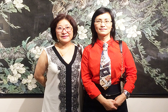图片说明:执委会主席郎豪莉(右)衷心欢迎北美知名画家王海婴(左)加入评审委员团队。