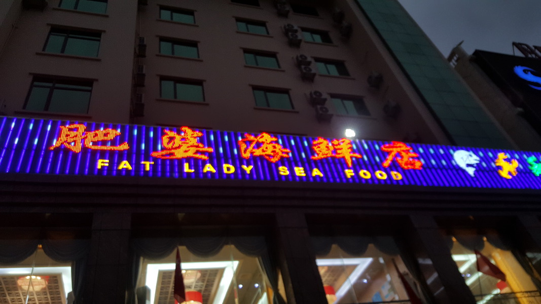 从清水湾回来,去吃的一家餐馆。别说,店家还真雇了一位肥婆,只不过她只是在那儿站着,不干活。肥婆品海鲜