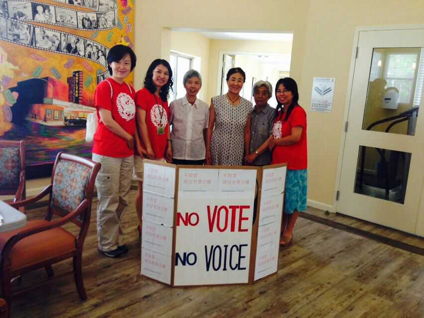 我们填表的时候,老人们都担心选票来了不会填。黄伯伯安慰他们,到时候我们义工会有人来帮他们。黄伯伯认识公寓里所有的老人(50多位中国老人),所有老人也认识他,大家和和睦睦就象一家人。有黄伯伯的帮忙,我们的工作很顺利,轻松愉快。可爱的张阿姨拉着我的手跟我拉家常,说她是东北人,先生是广东人,跟我家刚好相反。然后,她又介绍其他老人。。。时间过得很快,转眼2个小时就过去了,我赶着去接女儿,只好依依不舍的跟大家告别。。。。