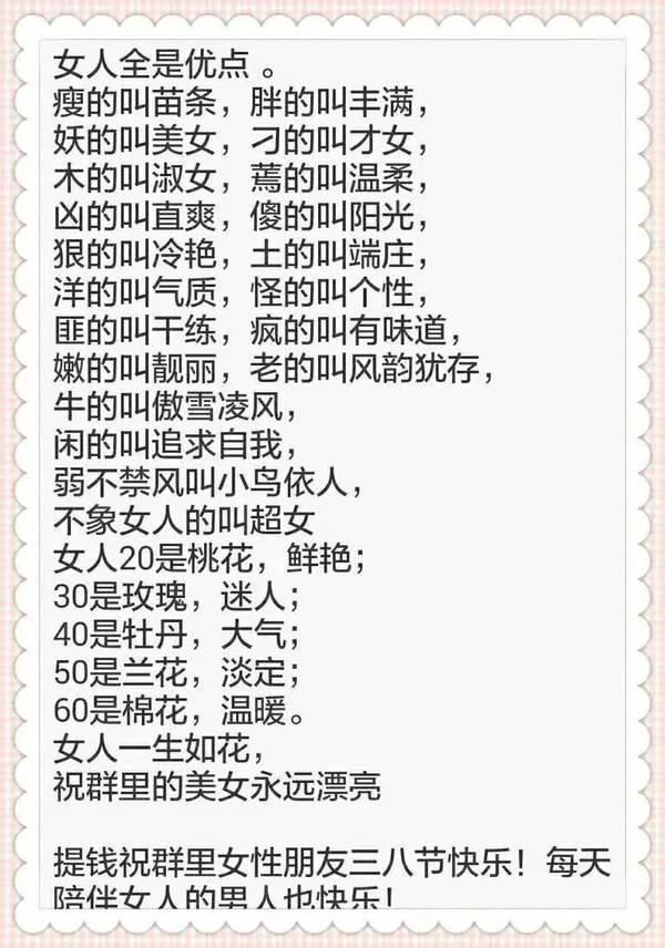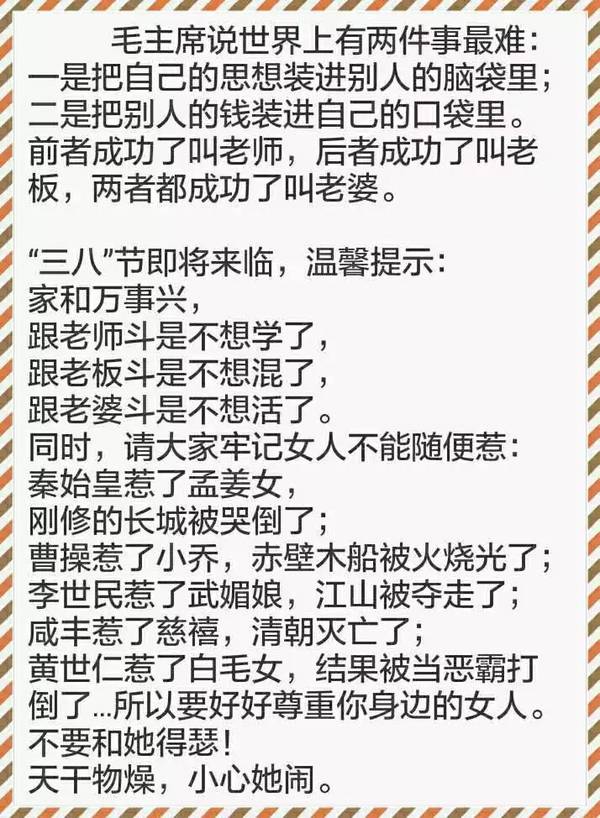 微信發文利器WeiDBcom,點這裡開始!👉👉【谁 更 三 八】(编辑:齐速) 🌟幽默小品 🌟求医问药 齐速-101392 03/06 35303 4.0/1 编者注:所有文字资料、图片资料皆摘自朋友群、朋友圈。谢谢我的朋友们!编辑于2016年3 8前一天。 微信發文利器WeiDBcom,點這裡開始!👉👉 http://www.weidb.co/p40897 获取作者更多文章 上一页 下一页 1. 2017年度首批蜂蜜隆重登場(45343) 2. 長安人廣告專欄(59452) 3. 如何讓自己脫離抑鬱症?(26622) 4. 【趋势】营养学的世界悄悄来临(26413) 5. SPA机刷这里!排毒去湿好气色!(27656) 6. (27033) 7. 牙痛是个什么鬼?(34495) 8. 【谁 更 三 八】(编辑:齐速)(35303) 9. 舌诊(28460) 10. 【情人节,你收到几朵玫瑰】(编辑:齐速)(26004) 11. 痛风不吃药彻底解决(20332) 12. 【个人短诗集】 家国如故 (2015) 作者:海石 by 彼岸诗缘 (49459) 13. CFDA进一步关于开展药物临床试验数据自查核查工作的公告(25401) 14. 《上帝给女性机会,但是你自己......》(19495) 15. 美国等渗酵素,你的健康,美容,减肥法宝(32340) 16. 【高旭古法针灸中医苑】(29715) 17. (21903) 18. (24229) 19. ⚠因为核辐射,日本食物被禁止,美国食品药物监督局发文严重警告!(37050) 20. 冬季预防感冒(22485) 上一页 下一页