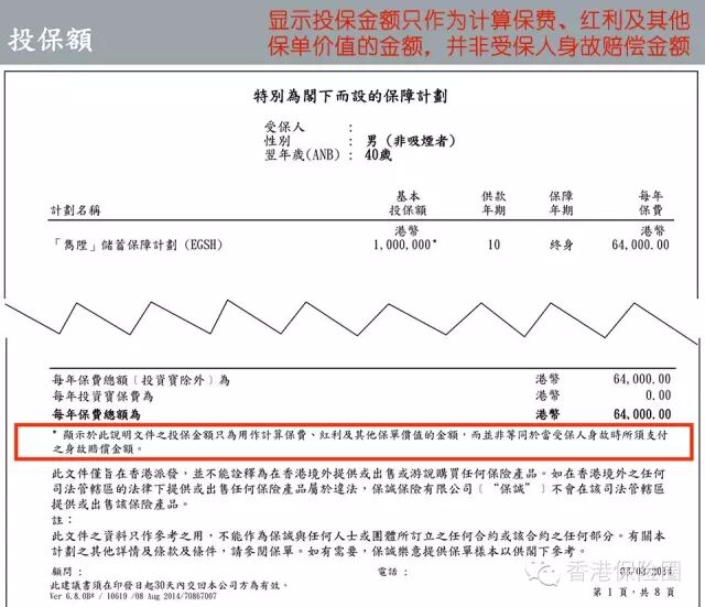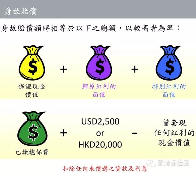人寿保障:若受保人不幸身故,现金价值上加2500美金/20000港币