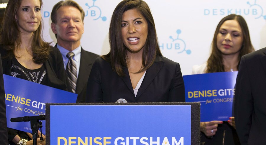 Denise Gitsham,中文名字:吉晓玉,母亲是来自台湾的移民,父親是在美國空軍服役二十年的加拿大移民。吉曉玉出生在加州,畢業於Georgetown大學法學院,之後在美國司法部工作,曾經是小布什選舉團隊的一員。2015年11月5,她宣佈競選第52區國會議員。