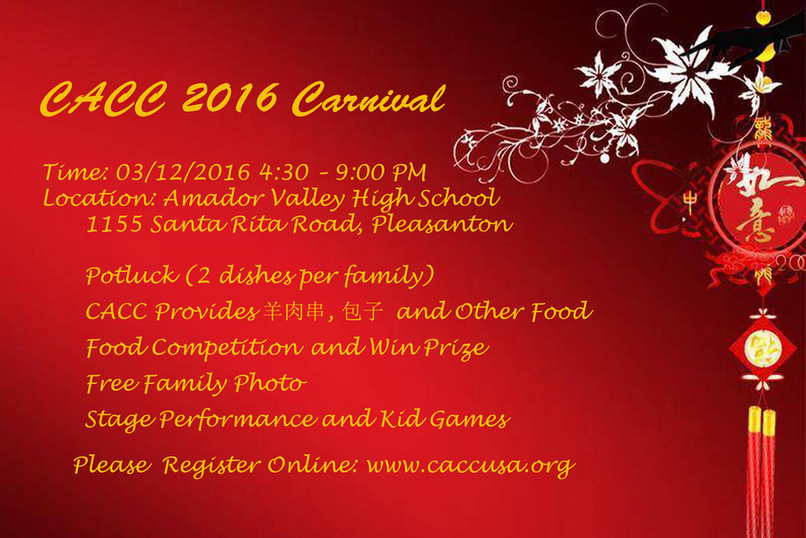 位于东湾Pleasanton市的CACC的中文学校创办13年来, 不仅以教学严谨, 教育水平高著称, 还以每年的多次丰富多彩的大型社区活动让人津津乐道。这不, CACC 刚于2月20号成功举办春晚Gala, 紧接着在3月12号又推出元宵节晚会Carnival。由CACC 秘书长Frank担任总导演,得到了CACC 理事会,学校职工,老师,学生,家长,众多义工及赞助商的大力支持。近400人扶老携幼冒着大雨,端着美食前来Amador高中体育馆捧场。室外风雨交加,室内热闹非凡,摩肩接踵,新朋故友互道问候,其乐融融。若用两个字来形容这台晚会,就是:很好。六个字:好吃,好看,好玩。