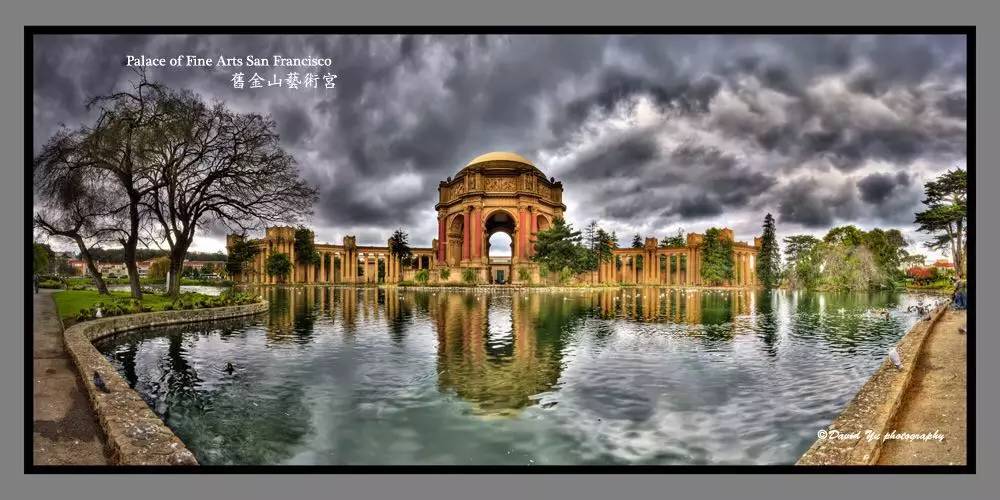 三藩市藝術宮乃1915年世界博覽會在本市舉辦盛會 遺留下來的重要建築物。 因其環境優美建築宏偉成了三藩市一處重要地標, 它又是新人结婚外景的熱門選擇。余氏利用HDR技法巧妙記錄雲彩的變化。