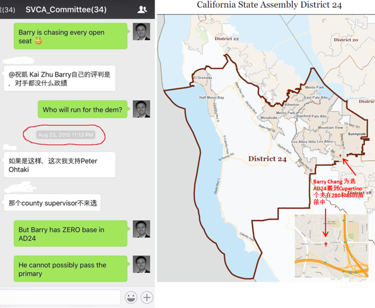 我们当时以为AD24不包括Cupertino,所以非常好奇,你如何以Cupertino市民身份,既要保住Cupertino市长这个大官宝座,而又同时去选2016的AD24?原来Cupertino有一个小小角落在AD24里面,就是280高速和85高速两条大公路交界的那个角落里面。你为了升官,居然就搬家到那个小小的,不到AD24百分之一的小小角落,忍受两条大高速公路交通噪声之苦,真是官瘾之大,用心之苦,怪难为你的!